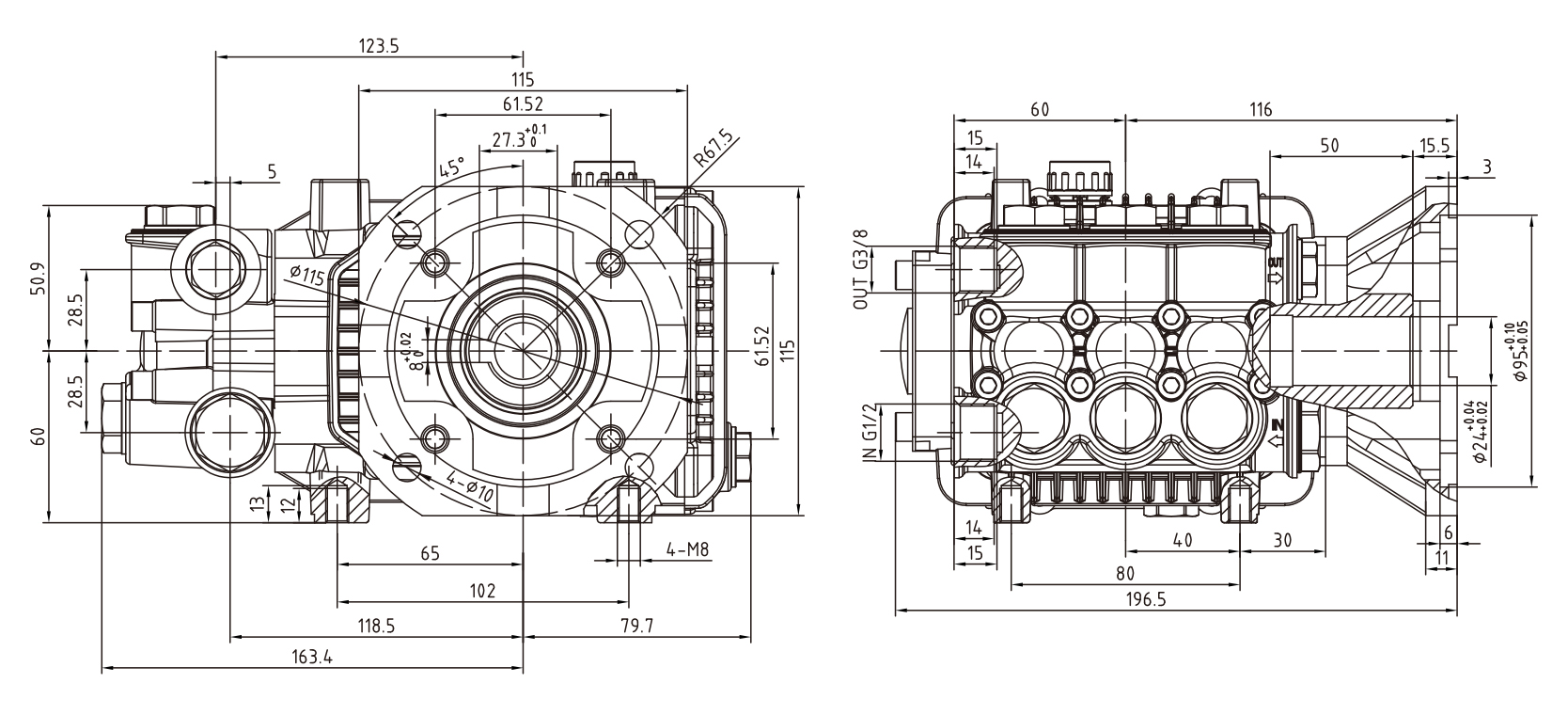 2、壓鑄鋁合金箱體,后蓋帶卸油口。柱塞的運(yùn)動是通過連桿與曲柄系統(tǒng)實現(xiàn)。高強(qiáng)度合金鋼曲軸,深溝球軸承與滾針軸承搭配,承載力大。